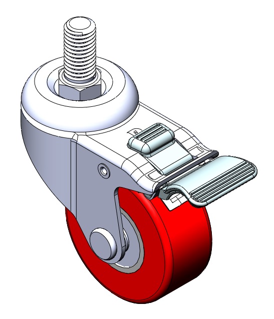 | 活動式腳輪,牙心鉚合沖壓腳架—5/8"-11牙 表面振動,底板式安裝裝置 鑄鐵製輪芯,高品質聚氨酯輪面 紅色,輪子軸承—精密滾珠。 |