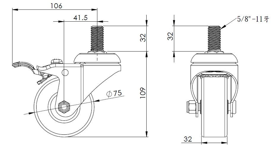 | PU輪 輪徑 × 輪寬 75 x 32mm |