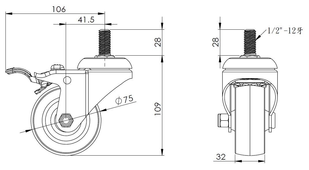 | 尼龍輪 輪徑 × 輪寬 75 x 32mm |
