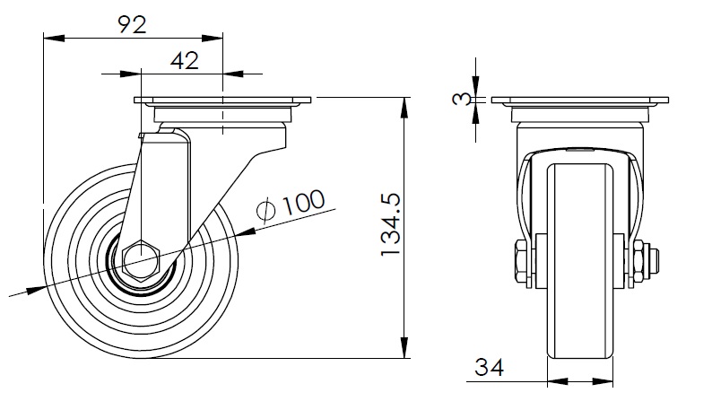 | PU輪 輪徑 × 輪寬 100 x 34mm |