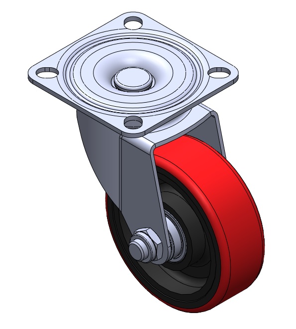 | 活動式腳輪,底板鉚合沖壓腳架 表面振動,底板式安裝裝置 鑄鐵製輪芯,高品質聚氨酯輪面 紅色,輪子軸承—精密滾珠。 |