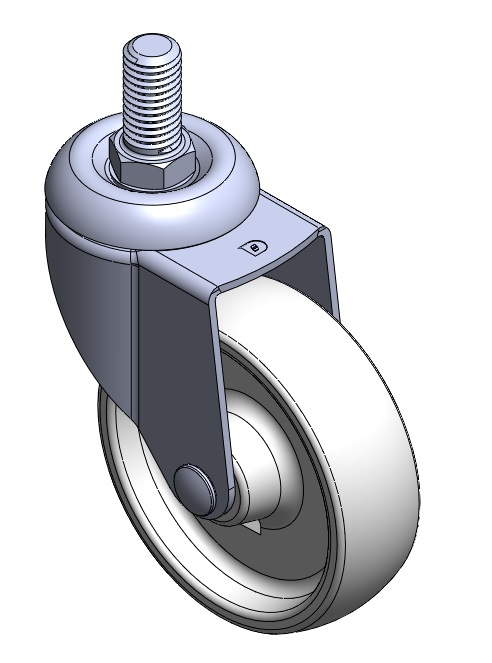 | 活動式腳輪,牙心鉚合沖壓腳架—5/8"-11牙 表面振動,絲扣式安裝裝置 熱可塑性塑料輪芯、輪面 白色,輪子—中管式。 |