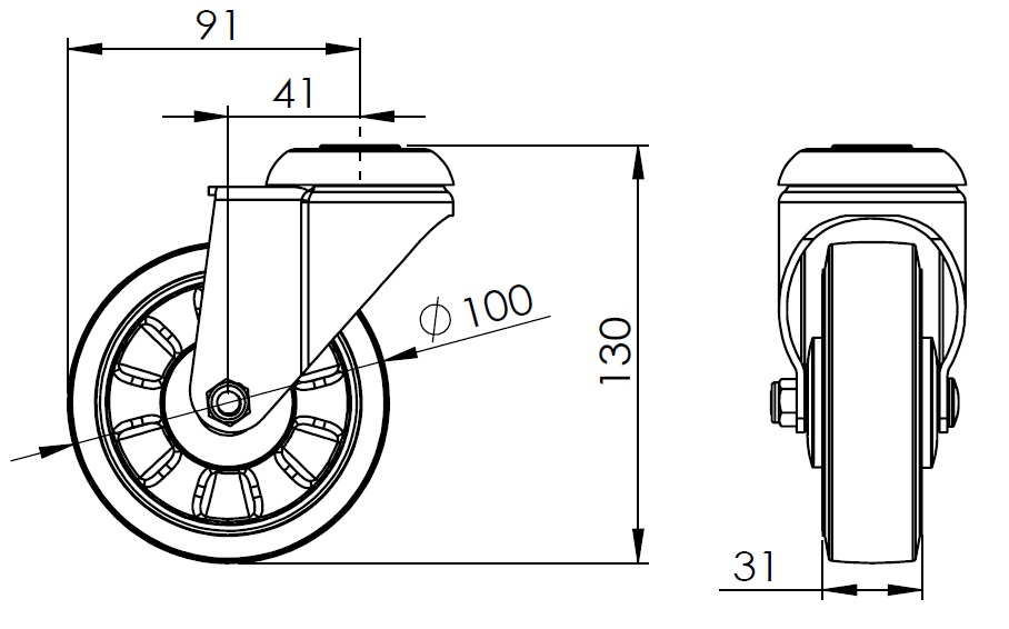 | W 尼龍輪 (白) 輪徑 × 輪寬 100 x 31mm |