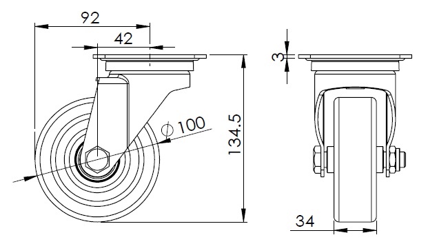| PU輪 輪徑 × 輪寬 100 x 34mm |