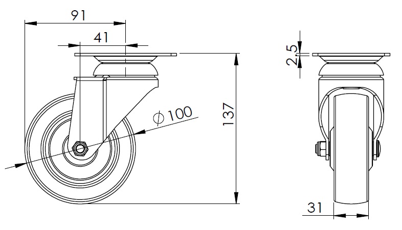 | 橡膠輪 輪徑 × 輪寬 100 x 31mm |