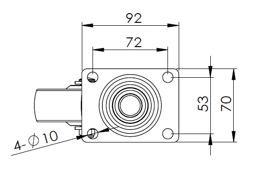 | 活動式腳輪,底板鉚合沖壓腳架—儀器孔 表面振動,底板式安裝裝置 高品質的彈力橡膠輪芯,輪面 黑色,輪子—中管式。 |