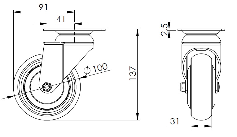 | 活動式腳輪,底板鉚合沖壓腳架—高級孔 表面振動,底板式安裝裝置 鋁製輪芯,高品質聚氨酯輪面 褐色,輪子軸承—精密滾珠。 |