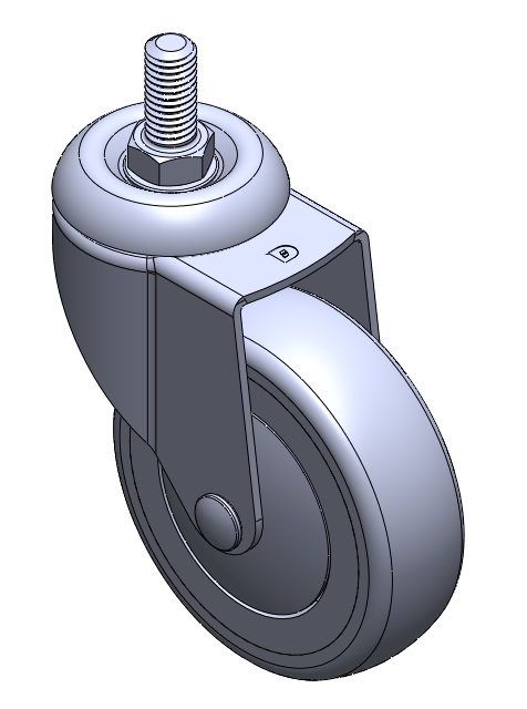 | 活動式腳輪,牙心鉚合沖壓腳架—1/2"-12牙 表面振動,絲扣式安裝裝置 耐衝擊聚丙烯輪芯,熱塑性彈性體(TPR)輪面 灰色,輪子—中管式。 |