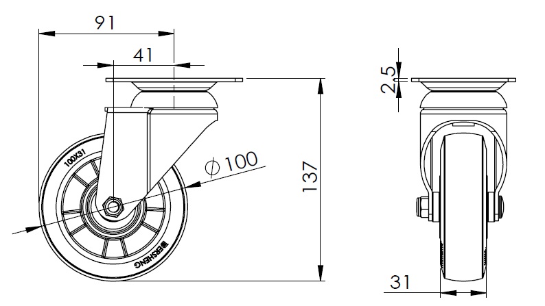 | 橡膠輪(紅) 輪徑 × 輪寬 100 x 31mm |