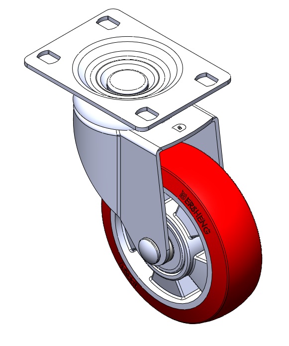 | 活動式腳輪,底板鉚合沖壓腳架—高級孔 表面振動,底板式安裝裝置 鋁製輪芯,高品質的耐高溫橡膠輪面 紅色,輪子軸承—精密滾珠。 |