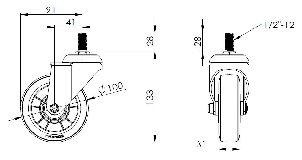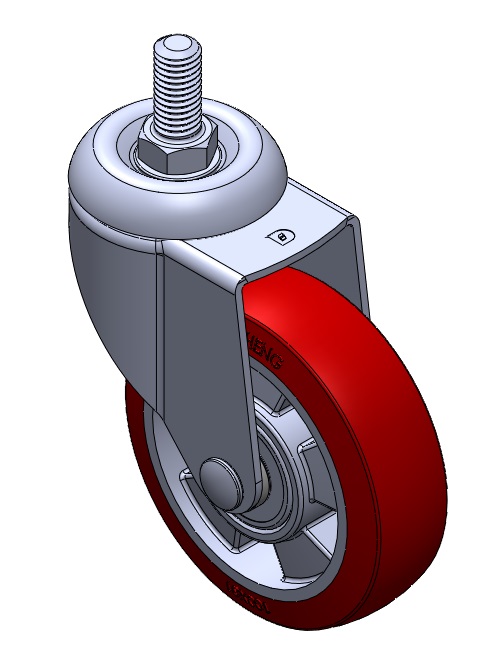 | 活動式腳輪,牙心鉚合沖壓腳架—1/2"-12牙 表面振動,絲扣式安裝裝置 鋁製輪芯,高品質的耐高溫橡膠輪面 紅色,輪子軸承—精密滾珠。 |