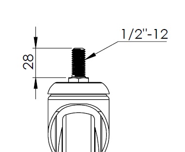 | 活動式腳輪,牙心鉚合沖壓腳架—1/2"-12牙 表面振動,絲扣式安裝裝置 耐衝擊聚丙烯輪芯,熱塑性彈性體(TPR)輪面 灰色,輪子—中管式。 |