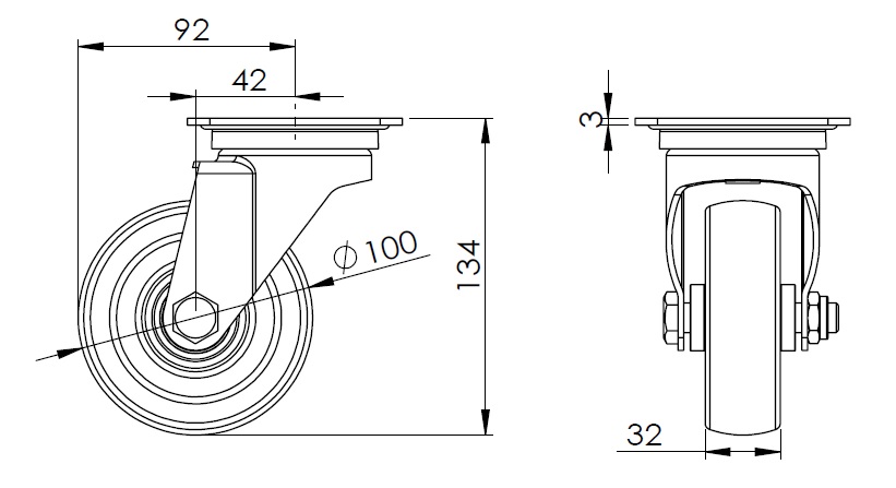 | 尼龍輪(白) 輪徑 × 輪寬 100 x 32mm |