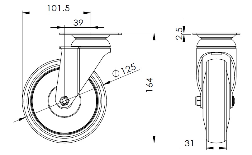 | PPR輪 輪徑 × 輪寬 125 x 31mm |