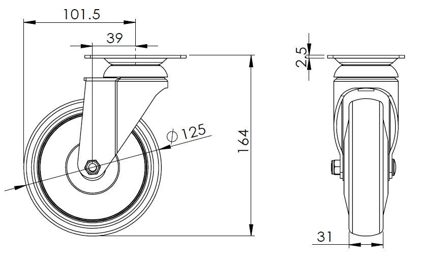 | PPR輪 輪徑 × 輪寬 125 x 31mm |