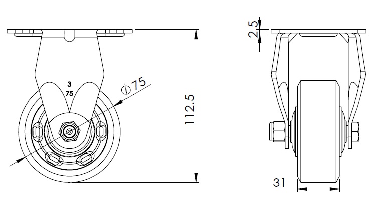 | W bánh xe hiệu ứng đầy đủ đường kính bánh xe × chiều rộng bánh xe 75 x 31mm |