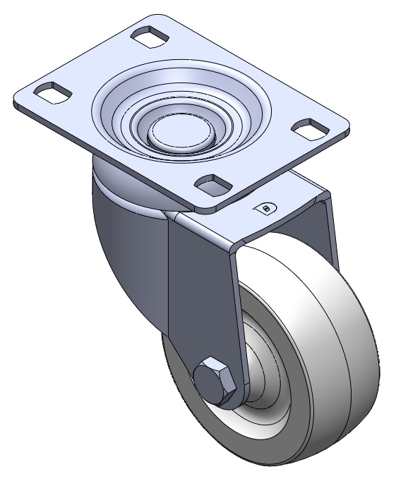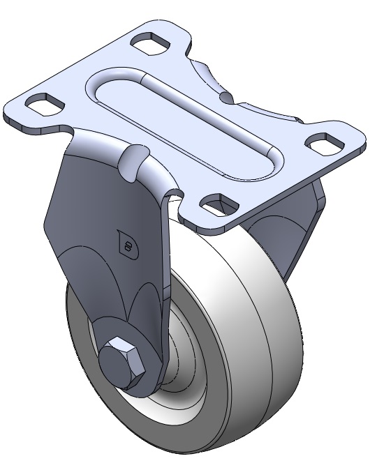 | Bánh xe cố định, khung dập liền khối — đục lỗ cao cấp Rung bề mặt, thiết bị lắp đặt tấm đế Lõi bánh xe và vành bánh xe bằng nhựa nhiệt dẻo Màu trắng, bánh xe — loại ống trung tâm. |
