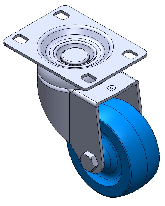 | Bánh xe cố định, khung dập liền khối — đục lỗ cao cấp Rung bề mặt, thiết bị lắp đặt tấm đế Lõi bánh xe và bề mặt bánh xe bằng nhựa nhiệt dẻo Bánh xe màu xanh — loại ống trung tâm. |