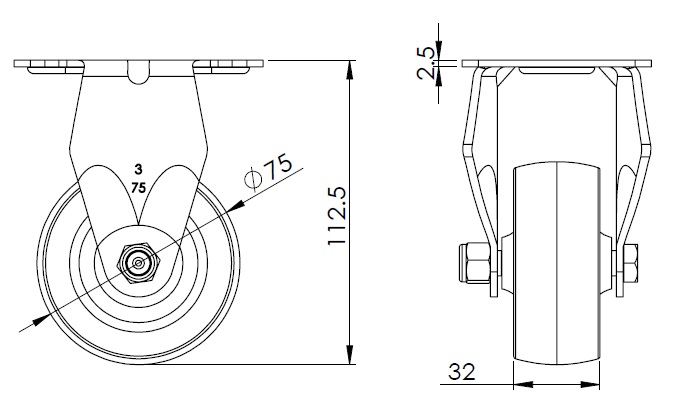 | Bánh xe nylon (màu xanh lá cây) Đường kính bánh xe × chiều rộng bánh xe 75 x 32mm |