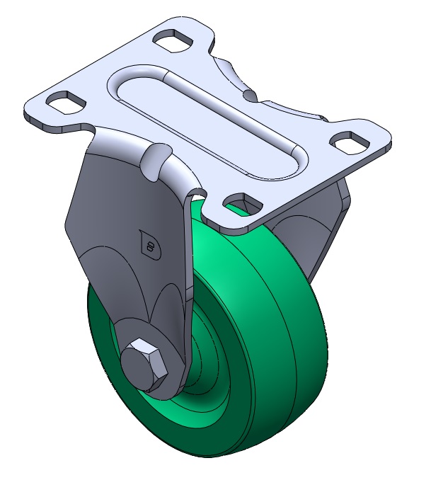 | Bánh xe cố định, khung dập liền khối — đục lỗ cao cấp Rung bề mặt, thiết bị lắp đặt tấm đế Lõi bánh xe và bề mặt bánh xe bằng nhựa nhiệt dẻo Màu xanh lá cây, bánh xe — loại ống trung tâm. |