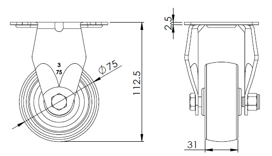 | Bánh xe nylon Đường kính bánh xe × chiều rộng bánh xe 75 x 31mm |