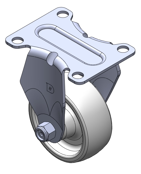 | Bánh xe cố định, khung dập liền khối — lỗ dụng cụ Rung bề mặt, thiết bị lắp đặt tấm đế Lõi bánh xe và bề mặt bánh xe bằng nhựa nhiệt dẻo Màu trắng, bánh xe — loại ống trung tâm. |