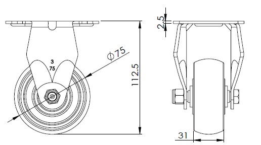 | Bánh xe AQPU (màu xám) đường kính bánh xe × chiều rộng bánh xe 75 x 31mm |