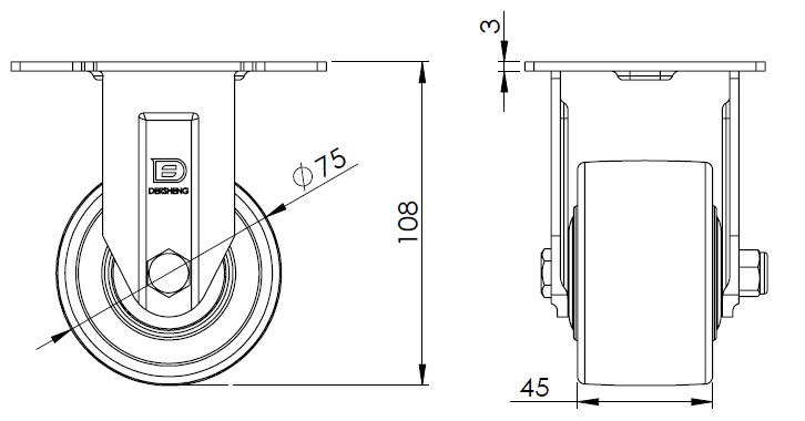 | Bánh xe nylon Đường kính bánh xe × chiều rộng bánh xe 75 x 45mm |