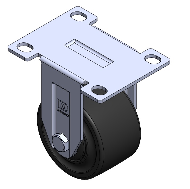 | Bánh xe cố định, khung dập liền khối; rung bề mặt, thiết bị lắp đặt tấm đế; lõi bánh xe và bề mặt bánh xe bằng nhựa nhiệt dẻo; màu đen; ổ trục bánh xe—ổ trục bi chính xác. |