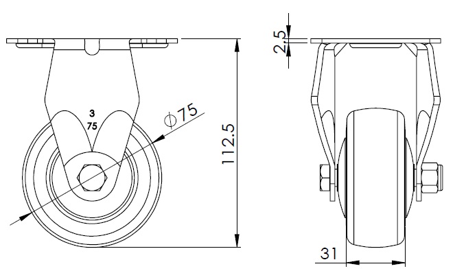 | Bánh xe PPR (màu xám đậm ngọc trai) Đường kính bánh xe × chiều rộng bánh xe 75 x 31mm |
