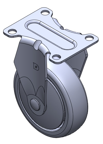 | Bánh xe cố định, khung dập liền khối — lỗ dụng cụ Bề mặt rung, thiết bị lắp đế Lõi bánh xe bằng polypropylene chống va đập, bề mặt bánh xe bằng nhựa nhiệt dẻo đàn hồi (TPR) Bánh xe màu xám — loại ống trung tâm. |