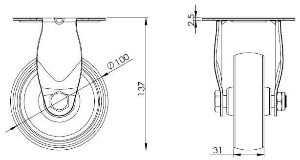 | Bánh xe nylon (màu trắng) Đường kính bánh xe × chiều rộng bánh xe 100 x 31mm |
