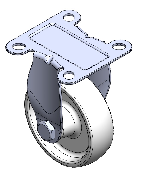 | Bánh xe cố định, khung dập liền khối; rung bề mặt, thiết bị lắp đế; lõi bánh xe và bề mặt bánh xe bằng nhựa nhiệt dẻo; bánh xe dạng ống trung tâm màu trắng. |