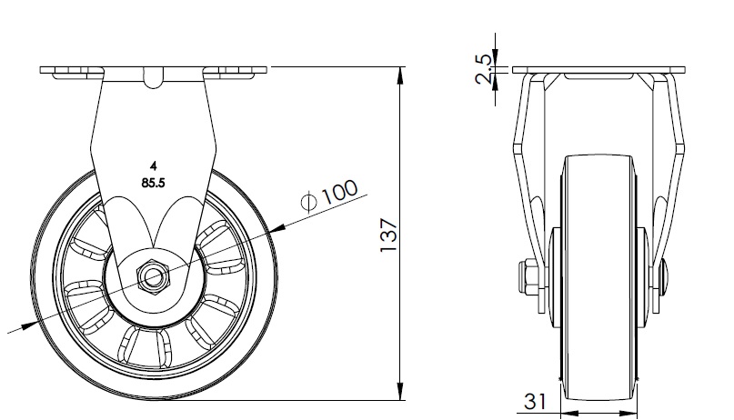 | Bánh xe nylon W (màu trắng) Đường kính bánh xe × chiều rộng bánh xe 100 x 31mm |