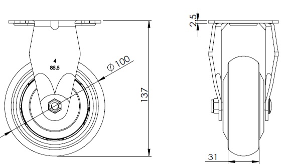 | Bánh xe AQPU (màu xanh) đường kính bánh xe × chiều rộng bánh xe 100 x 31mm |