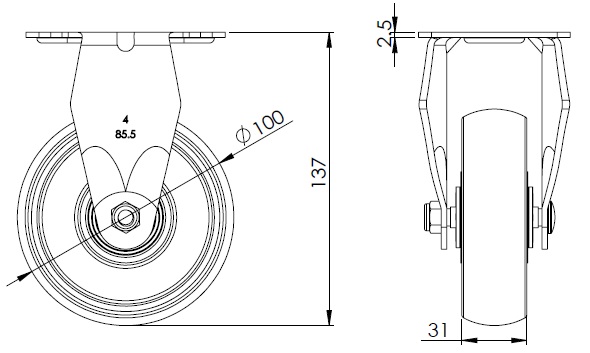 | Bánh xe AQPU (màu xám) đường kính bánh xe × chiều rộng bánh xe 100 x 31mm |