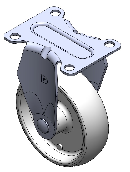 | Bánh xe cố định, khung dập liền khối — lỗ dụng cụ Rung bề mặt, thiết bị lắp đặt tấm đế Lõi bánh xe và bề mặt bánh xe bằng nhựa nhiệt dẻo Màu trắng, bánh xe — loại ống trung tâm. |