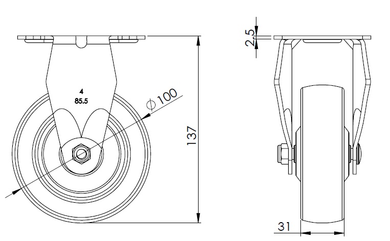 | Bánh xe cao su Đường kính bánh xe × chiều rộng bánh xe 100 x 31mm |