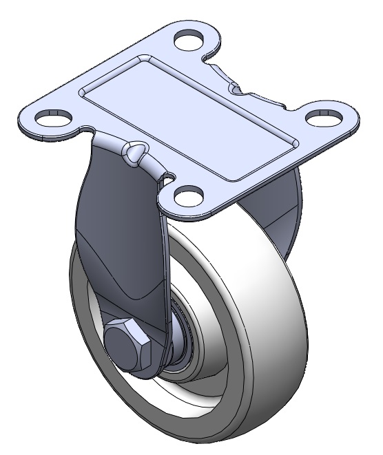 | Bánh xe cố định, khung dập liền khối; rung bề mặt, thiết bị lắp tấm đế; lõi bánh xe và bề mặt bánh xe bằng nhựa nhiệt dẻo; màu trắng; ổ trục bánh xe—ổ trục bi chính xác. |
