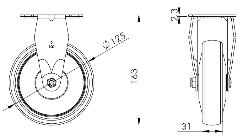 | Bánh xe PPR đường kính bánh xe × chiều rộng bánh xe 125 x 31mm |