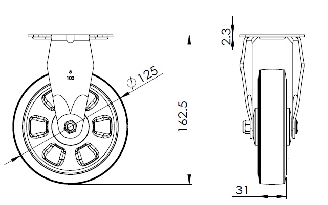 | W bánh xe hiệu ứng đầy đủ đường kính bánh xe × chiều rộng bánh xe 125 x 31mm |