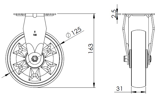 | Bánh xe nylon W (màu trắng) Đường kính bánh xe × chiều rộng bánh xe 125 x 31mm |