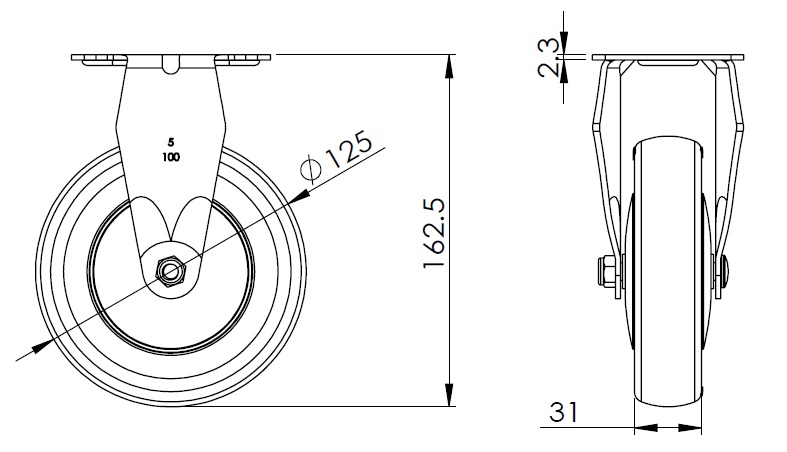 | Bánh xe PPR đường kính bánh xe × chiều rộng bánh xe 125 x 31mm |