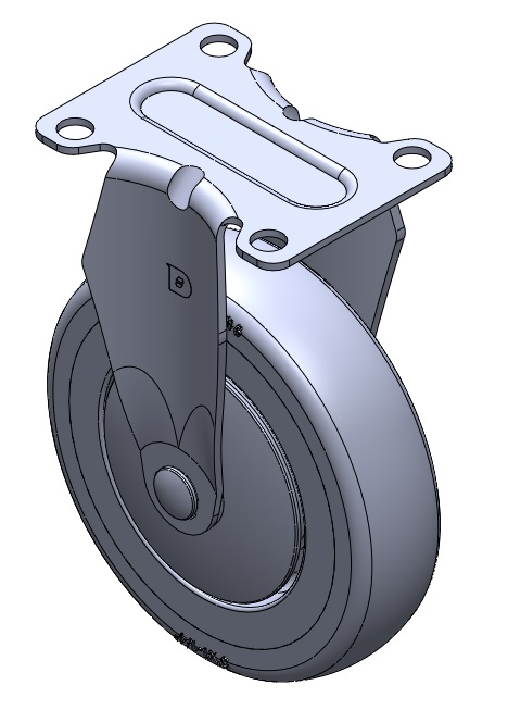| Bánh xe cố định, khung dập liền khối — lỗ dụng cụ Bề mặt rung, thiết bị lắp đế Lõi bánh xe bằng polypropylene chống va đập, bề mặt bánh xe bằng nhựa nhiệt dẻo đàn hồi (TPR) Bánh xe màu xám — loại ống trung tâm. |