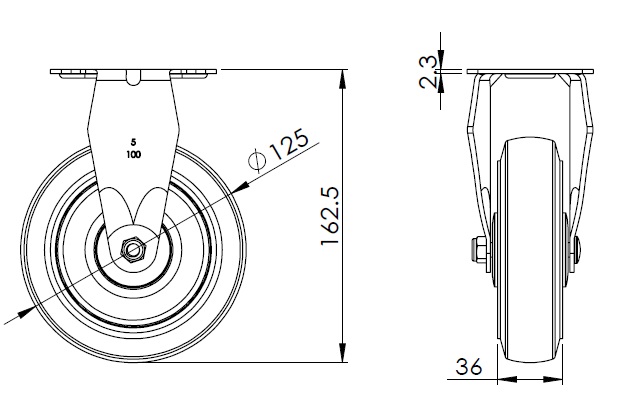 | Bánh xe đàn hồi toàn phần đường kính bánh xe x chiều rộng bánh xe 125 x 36mm |