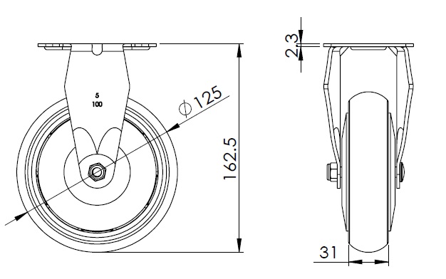 | Bánh xe AQPU (màu nâu) Đường kính bánh xe × chiều rộng bánh xe 125 x 31mm |