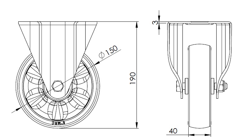 | WMRC đường kính bánh xe × chiều rộng bánh xe 150 x 40mm |