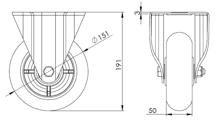 | Bánh xe hiệu ứng đầy đủ Đường kính bánh xe × chiều rộng bánh xe 151 x 50mm |