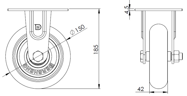 | Bánh xe EQPU (màu nâu) đường kính bánh xe × chiều rộng bánh xe 150 x 42mm |