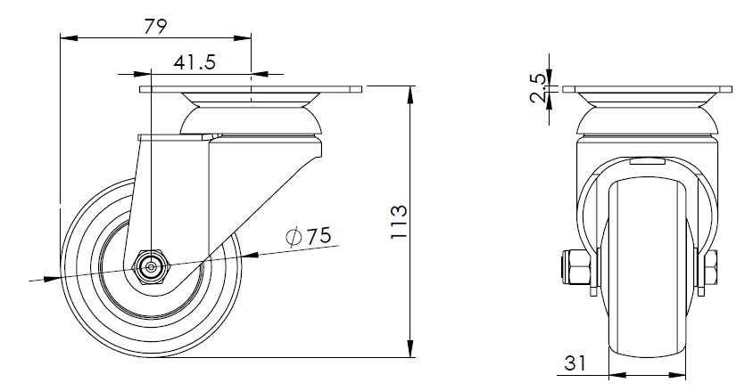 | Bánh xe PPR (màu đỏ) đường kính bánh xe × chiều rộng bánh xe 75 x 31mm |